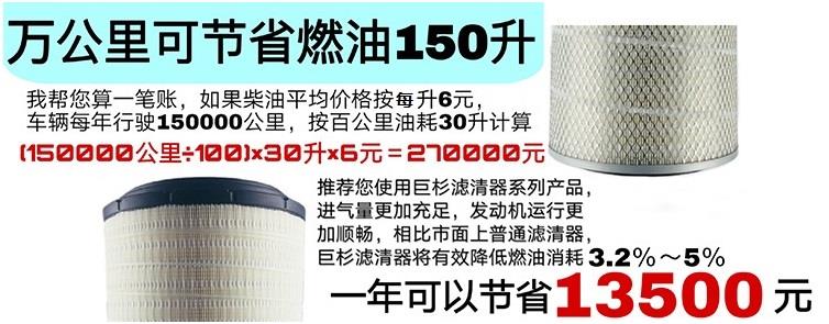 根据实际工况合理选择星空体育在线(中国)唯一官方网站,长途型货车使用高透气量滤芯,是能达到节油效果的。